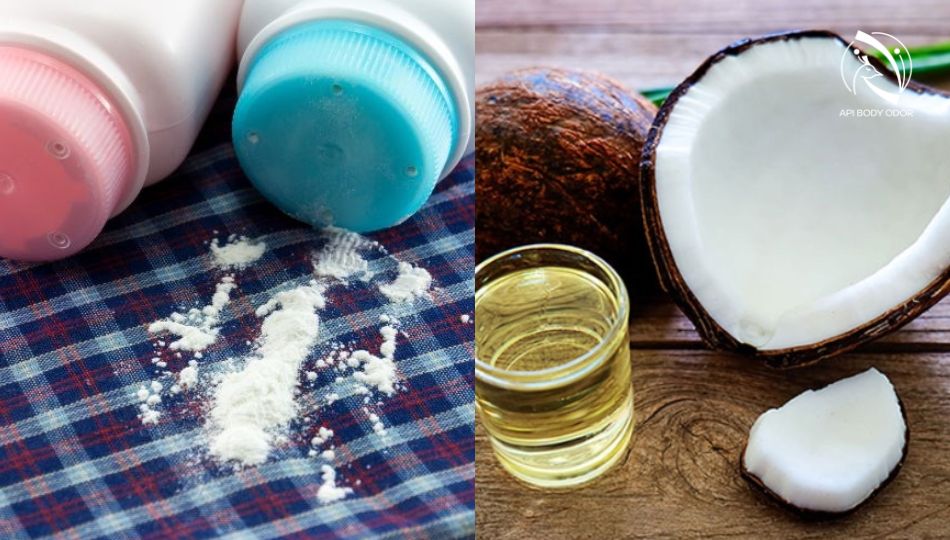 Sau khi vệ sinh vùng da dưới cánh tay sạch sẽ, thoa dầu dừa và mát xa khoảng 5 phút và rửa lại thật sạch, sau đó rắc phấn rôm lên để khử mùi và ngừa mồ hôi.