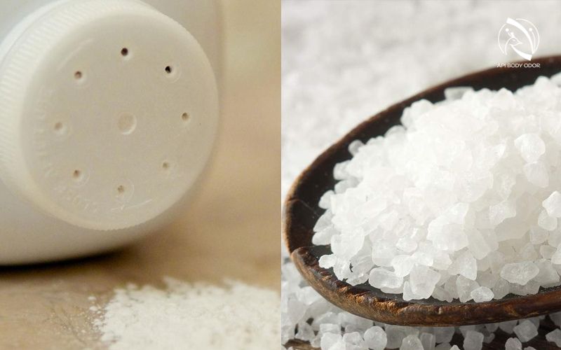 Cách trị hôi nách bằng phấn rôm và muối sẽ đem lại hiệu quả không ngờ. Bản chất muối làm sạch và sát khuẩn nên sẽ loại bỏ được chất bẩn gây mùi khó chịu tại nách. Bạn cần trộn đều hỗn hợp muối và phấn rôm theo tỉ lệ 2:1, sau đó thoa lên da 1-2 phút.